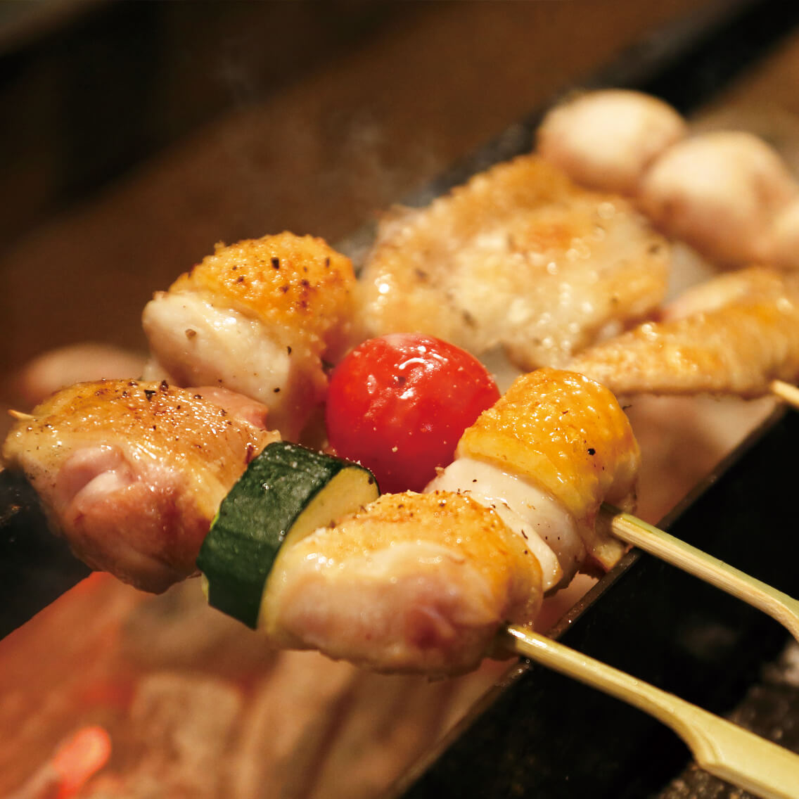 土佐 備長炭は、煙が少く雑味が付きにくいのが特徴で、遠赤外線効果で素材を芯から温め、表面はこんがりと中はジューシーに焼き上げることができます。